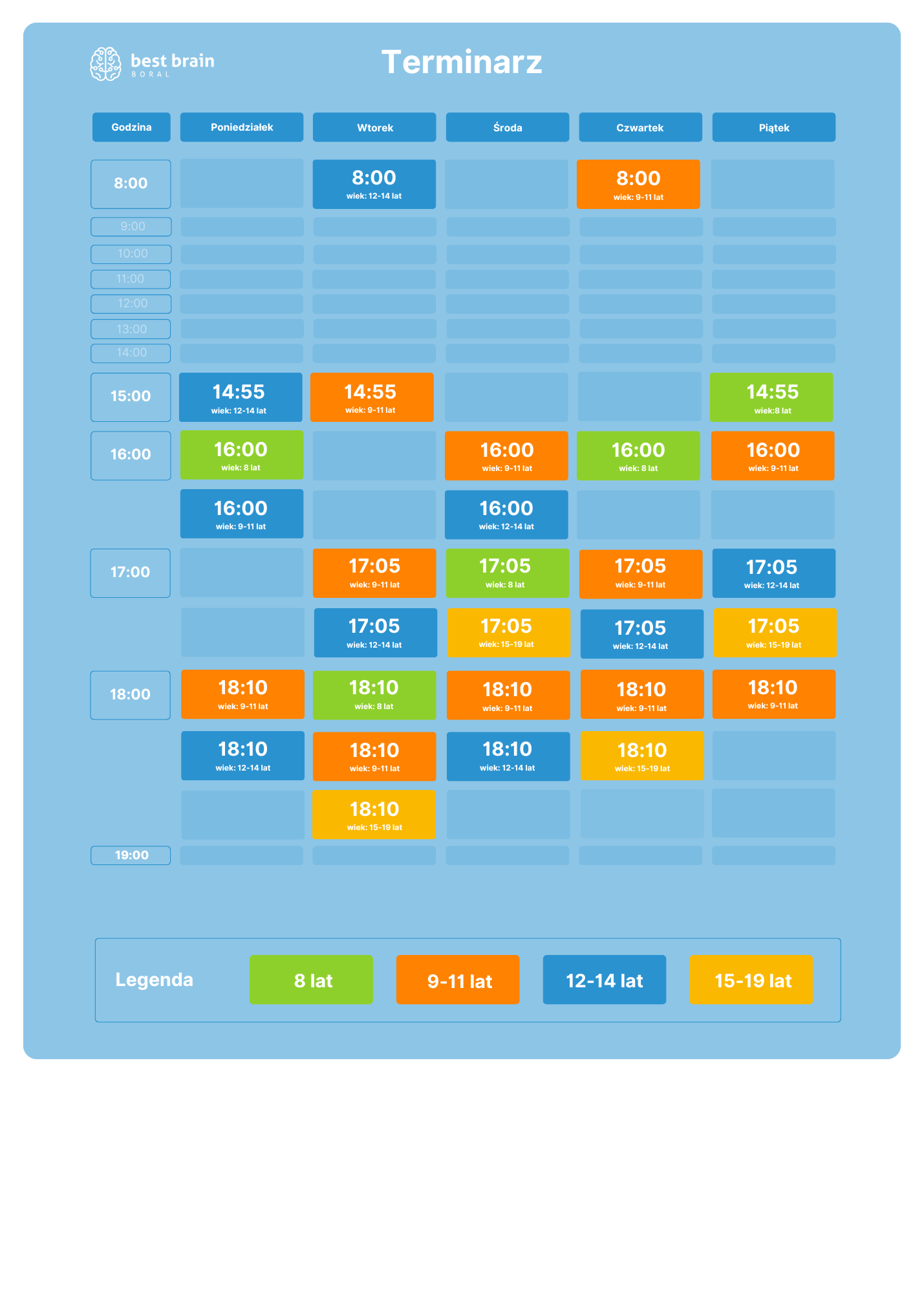 minimum 30-lekcji online prowadzonych przez certyfikowanego trenera Best Brain realizowane w małych grupach (lekcja trwa 60 minut)